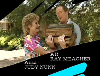 On Monday 10th April 1989 (Episode 281), four weeks after the last change, the opening titles were given a complete overhaul for the first time since Episode 1. The style remained the same, but all character shots now featured a coloured brush stroke like the filler shots (this had only happened twice previously, with Sally in the Pilot episode and Morag in the previous 1989 set). All characters from the previous set remained, with the only addition being Dag Dog in a shot with Sally and Steven. The 'Home and Away' logo also received a subtle change, going from white to a pale blue.