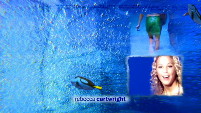 As well as some tweaks to the spacing and speed of the frames through the sequence, there were also newly updated shots for Hayley, Nick, Irene and Dani. In what may have been an oversight, the bluescreen background behind the actors in the five new shots had not been keyed out, leaving them looking plainer than the other shots.
