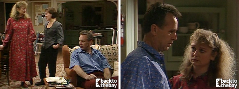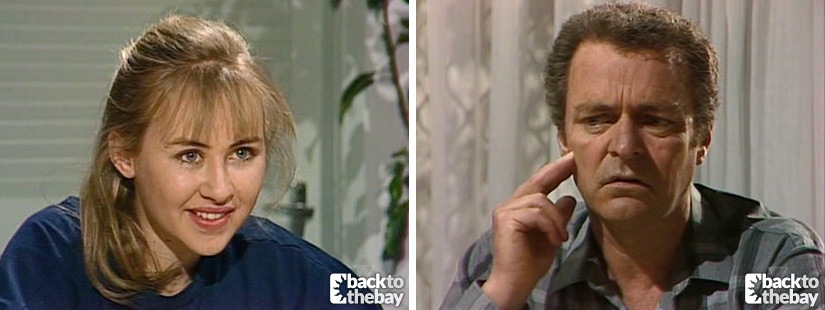 Don is practising what to say for Viv when she comes in wearing her new bikini. She says it’s for when she goes to the beach with Steven and she misinterprets Don’s comment on there being enough of her to see, thinking he’s calling her fat. Don asks her to cover herself up while they’re having dinner and she puts on a baggy jumper but leaves her cheese because she’s worried about putting on weight. Don broaches the subject of her having a physical relationship and Viv realises he’s talking about her and Steven sleeping together, saying they’re not. Don attempts again to discuss the risks but Viv says if they do sleep together they’ll take all that into account and that kids today know more about the risks than Don’s lot.