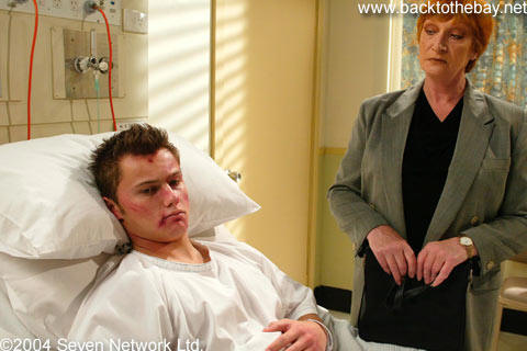 Alf has asked Morag to offer her legal services to Dalby for free – as a means of checking out what state he’s in, and what kind of Grandson he’d make. Flynn tells her Dalby’s got a punctured lung from the beating he sustained, he’s up for manslaughter, and he has no money. Morag is unmoved. She’s only doing this for Alf. Dalby is suspicious of her motives, but says if she’s got nothing better to do – go for it. After the spiteful encounter, Morag tells Alf her advice is to stay as far away from the boy as possible; he’s a nasty piece of work.