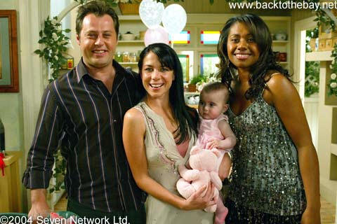 Her solution is to take the party to Summer Bay house! Sally and Flynn are shocked, but Josie tells them it fits right in with the theme of the day, which is ‘a new start and the start of better times.’ Baby Pippa gets a new outfit; Lance gives a moving address on what his friendship with Sally means and how grateful he is to be Pippa’s godfather; Alf reads a prayer from the heart, thanking God for the blessings the town has had during the year – Leah’s gift of life to Sally and Flynn for one – and expresses his puzzlement at some of the unfathomable ways of the Big Fella upstairs.