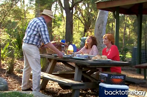 John wants Alf’s views on a local issue, but Alf isn’t too interested in giving his opinion – especially, as he announces, he won’t be around for very long. Alf throws a BBQ that afternoon for his family and friends where he announces that as a result of his time locked up, he is going to leave Summer Bay to go backpacking around the world and see it all while he has the chance – and he’s leaving the next day! He wants to visit his family roots in Scotland and visit his various family members around the world, which is the the reason he’s going on a tight budget. Morag is less than supportive of his ambitions, and later lets her guard down to Colleen when she reveals that she’s worred about feeling alone.