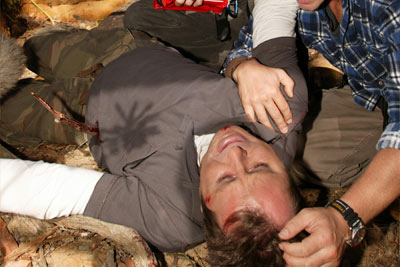 Flynn, Scott and Dan then went camping and after rescuing Dan from falling off the cliff, Flynn promptly fell off the cliff himself, impaling himself on a stick. Flynn was taken to the hospital where he survived, but started having recurring dreams about his impending death and began sorting out his will.