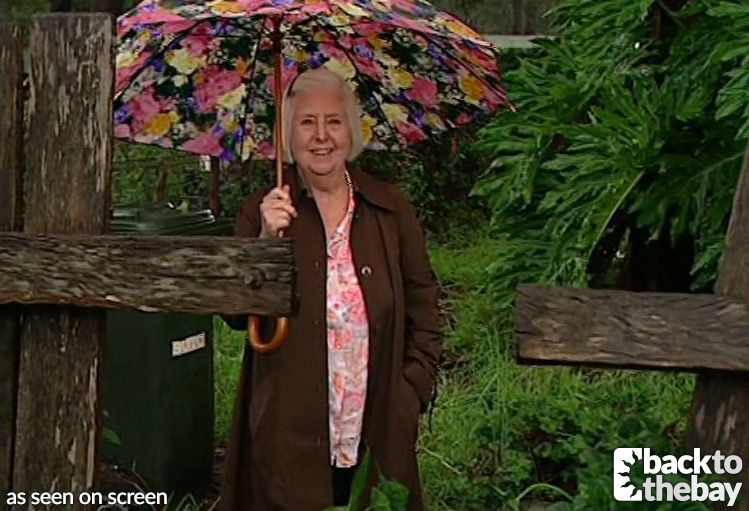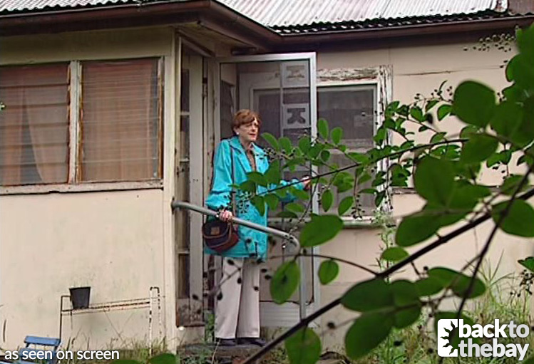Pulling up outside the dilapidated and long-abandoned house in Episode 2867, Ailsa (temporarily played by Nancye Hayes) couldn’t face going in and returned to her motel. She did return the next day however, and as she wandered through the house she had flashbacks to the fateful day that she stabbed her father in the kitchen. Stepping into the back garden, she spotted her old neighbour Mrs Trent. The two talked inside the house, where Mrs Trent told Ailsa that her mother had always loved her, and hadn’t visited her in prison out of shame for not standing up to Harold herself. Shauna then turned up unexpectedly, but Ailsa felt it right that she should be there as she laid the past to rest.
