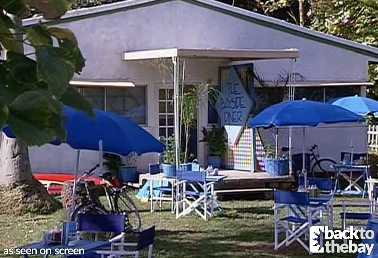Set up by Ailsa Stewart and Bobby Simpson, The Bayside Diner was first seen in Episode 226 in the final week of 1988 (the exterior seen in the first episode of 1989), and featured as an iconic location in the show for nearly 12 years. When Colleen accidentally started a chip pan fire in Episode 2934 (October 2000), Sam Marshall’s refusal to reinvest his share of the insurance money meant that Alf and Ailsa later ended up moving premises to the Beachside Diner.