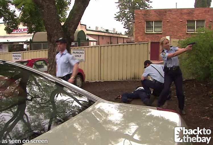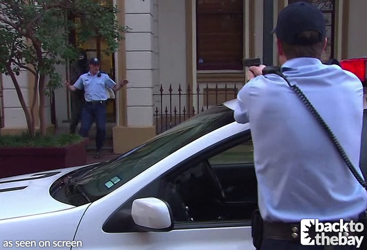The bank used for filming was the National Australia Bank in the Hawkesbury town of Windsor, an area used frequently by the show. The car park where Jack was shot sits at the rear of the bank, with the entrance off Kable Street.