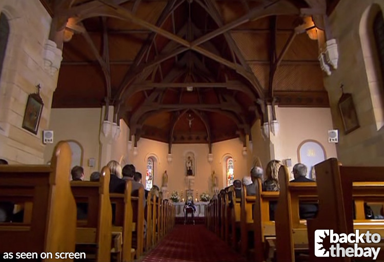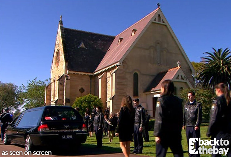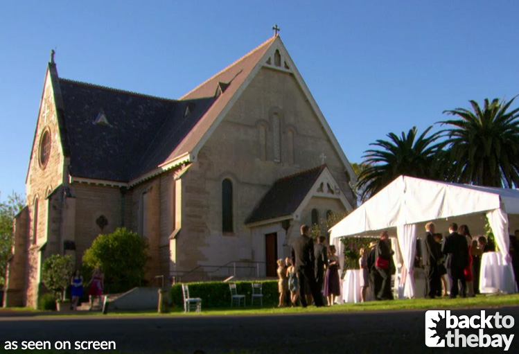 The filming location was not the usual Summer Bay church, but the St Peter Peter Chanel catholic church in the Northern Sydney suburb of Hunters Hill, around 3.5 miles NW of Sydney’s CBD.
