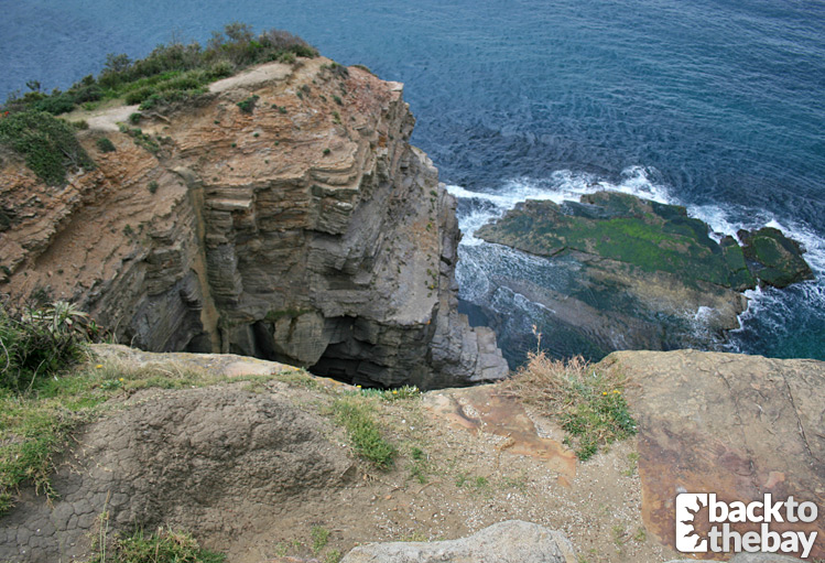 Jumping off the 13 metre high cliffs is also a popular pastime with teenagers at the real life location, the Warriewood Blowhole, though extremely dangerous. At least 6 people have died there since 1992, and several others left permanently injured. A quick Google search can bring up several stories, pictures and videos of people’s jumps – though the jump itself isn’t into the blowhole itself, seen in our 2nd photo, but into the sea off the north facing cliff.