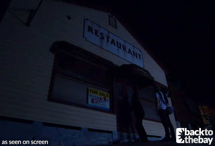 In reality the building is a former restaurant in the Hawkesbury River town of Brooklyn, and appeared to be in the same condition when we photographed it in October 2009, 5 months after it was used on the show.