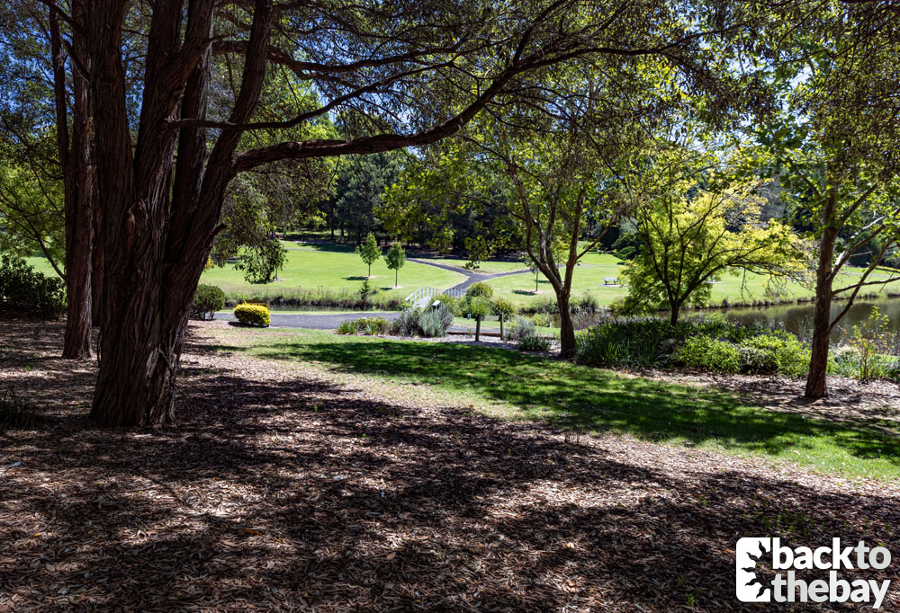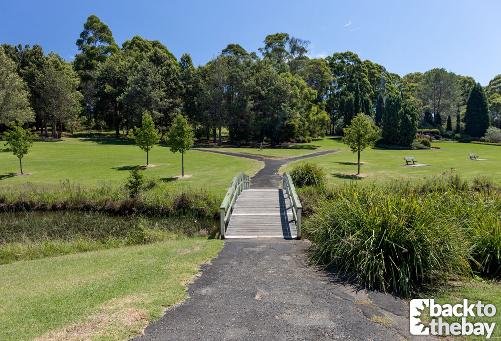 The scenes were filmed in Fagan Park, 55-hectares of landscaped gardens in the Hornsby Shire suburb of Galston, close to the much utilised areas of Kenthurst and Dural. The bridge the family were seen crossing sits over the southern end of the central lake, at the bottom of a hill encompassing the ‘Gardens of Many Nations’. The graves were situated immediately south-east of the bridge, amongst some trees in the ‘English Garden’