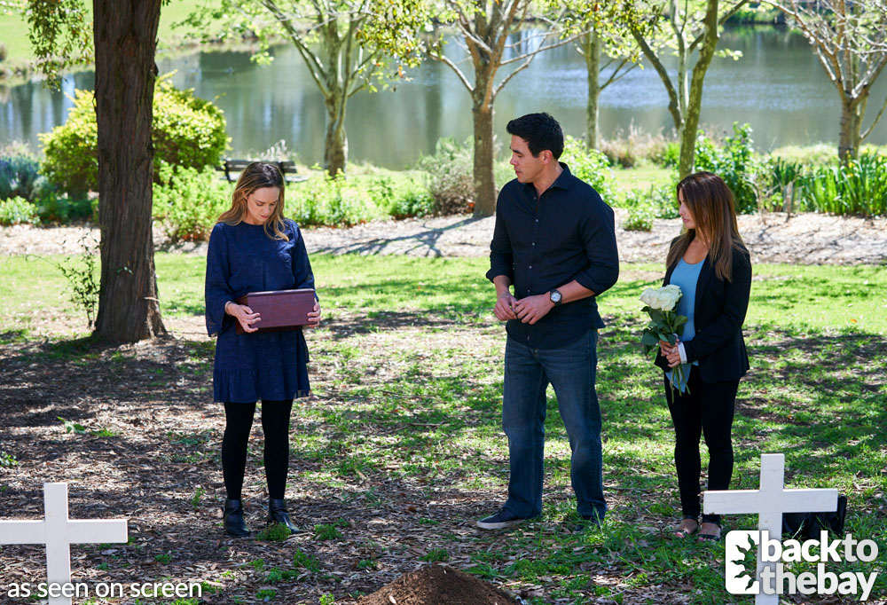 Tragically, Justin, Tori and Leah later returned in Episodes 7306–7307 in 2020 to inter Mason’s ashes at the site, following his death in the hospital siege. Mason was placed between his parents graves, as a nod to his constantly lying in bed between them as a kid.