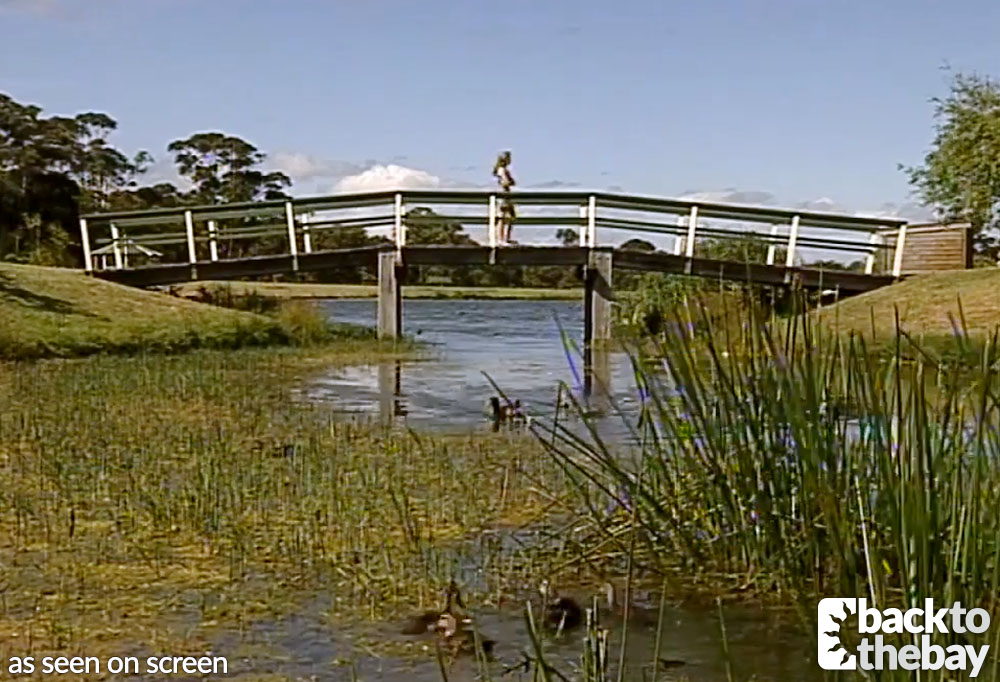 The bridge was previously seen in Episode 1867 in 1996, being the spot in a Yabbie Creek park where Shannon Reed had arranged to meet her birth mother Kate Jones. Shannon was disappointed when Kate was a no-show, but little did she realise at the time that well-known politician Katherine Walker, who booked herself into the caravan park that very afternoon, was in fact the same woman.