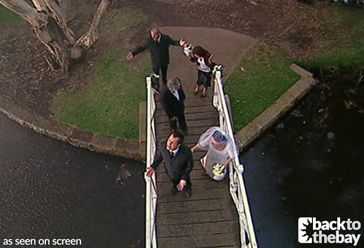 The picturesque, and seemingly rural, location originally chosen for the ceremony actually lies in Centennial Park right in the middle of Sydney, only 4km south of the CBD. The same location was also seen in a clever sequence in Episode 2955 back in 2000, when Donald Fisher daydreamed about marrying Judith Ackroyd.