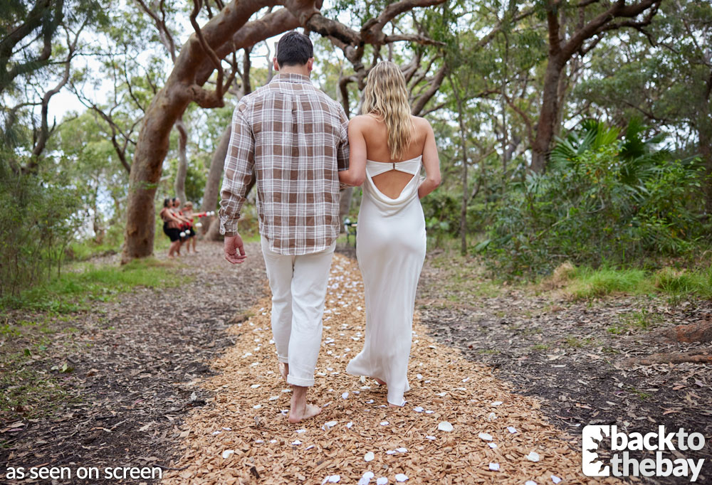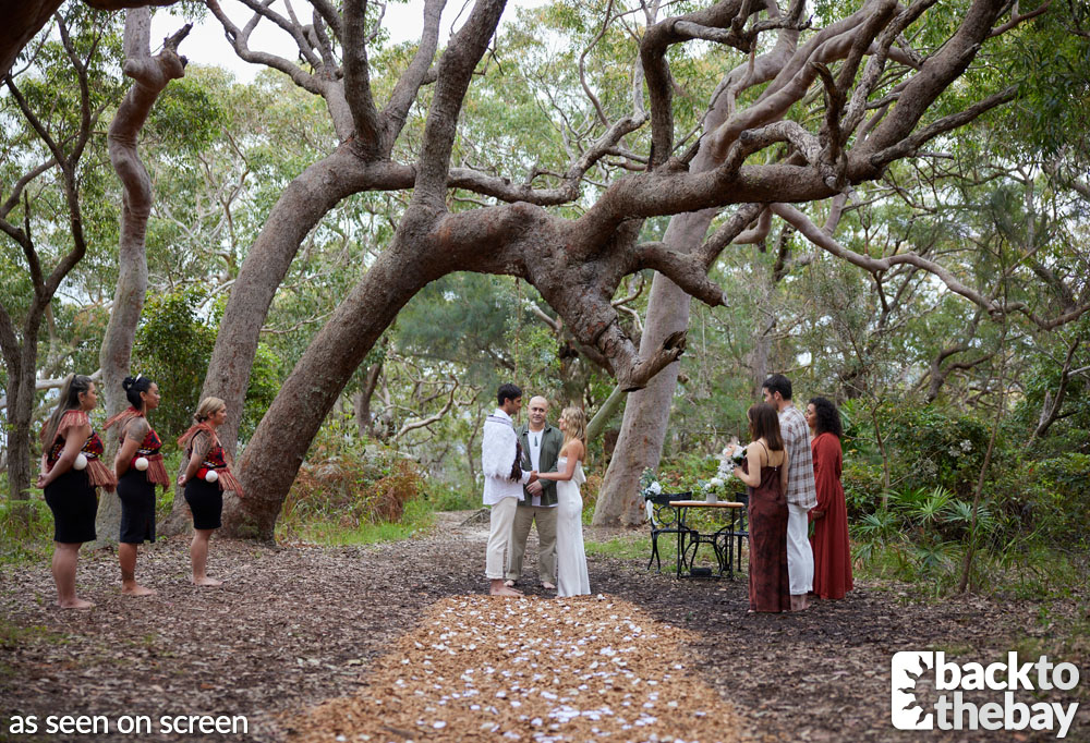 Although the exact setting was unspecified on screen, in reality the ceremony was filmed at the McKay Reserve in Palm Beach, which sits on the headland at the southern end of the beach (the opposite end from the lighthouse).