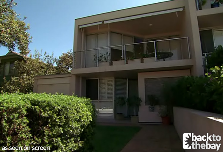 In reality the townhouse is part of a complex of five 3-bedroom houses, aimed for the over-55’s, in the Northern Beaches suburb of Newport. In order to match the entrance of the studio set, the outlook of which needs to be concealed for obvious reasons, a fake wall was placed in front of the front door for filming purposes.