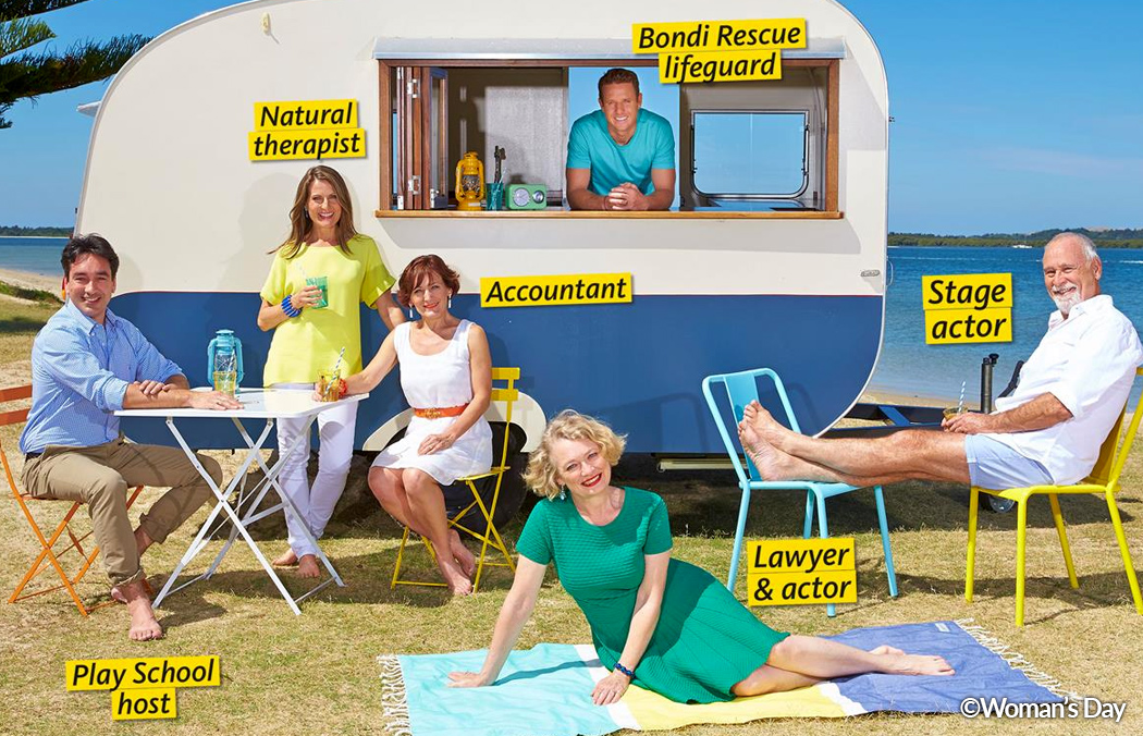 Original Home and Away cast members Vanessa Downing (Pippa Fletcher), Roger Oakley (Tom Fletcher), Alex Papps (Frank Morgan), Sharyn Hodgson (Carly Morris/Lucini), Nicolle Dickson (Bobby Simpson/Marshall) came together for the shoot and interview, which also included Ryan Clark who played Sam Marshall from 1991-2000.