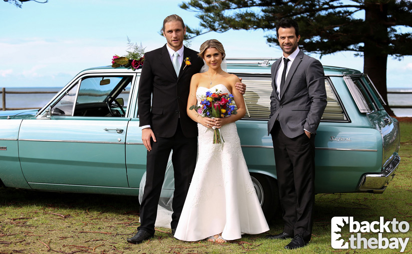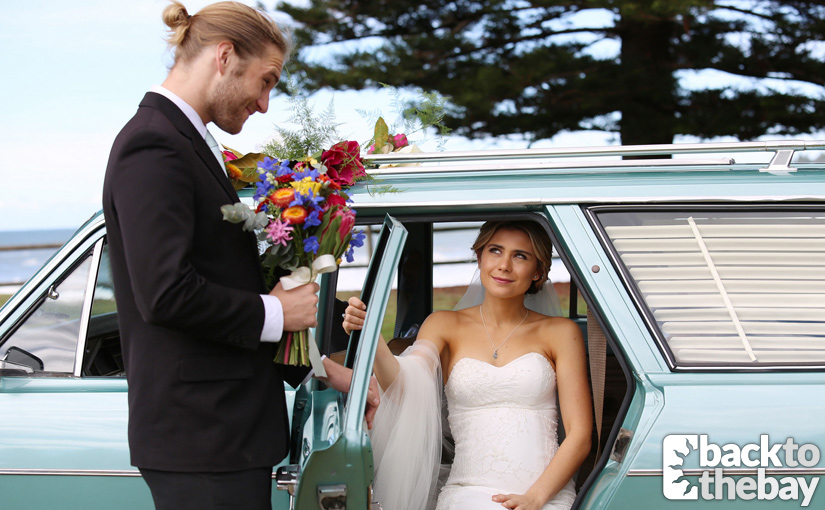 Future ‘stepfather-in-law’ Zac MacGuire (Charlie Clausen) provides his services as chauffeur and a proud Ash (George Mason) walks his sister up the aisle to a beaming VJ.