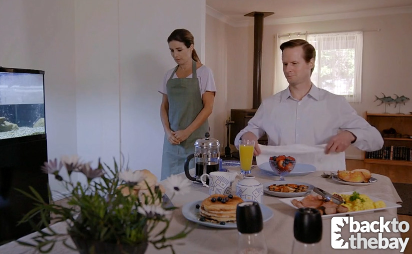 As Douglas takes a seat at the perfectly set breakfast table, he comments that his coffee cup appears to be empty. A timid and apologetic Leah emerges from the kitchen in an apron and fills the cup, before Douglas remarks that they’re two minutes over schedule. It’s clear that Leah is in dangerous company as she obeys his every order.