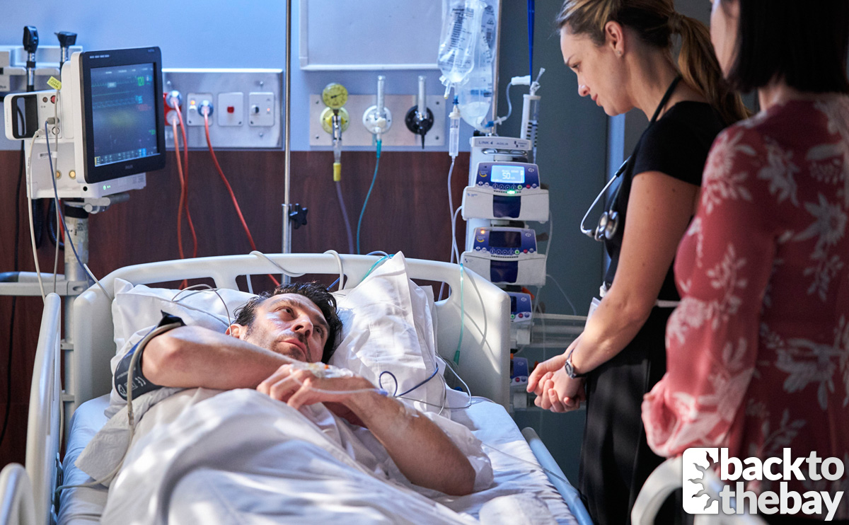 As a semi-conscious Ben is rushed into hospital. Tori (Penny McNamee) tries to work out what’s wrong with him, but things aren’t adding up. The headache and temperature would suggest an infection, but as she receives his blood test results it becomes clear that isn’t the case.