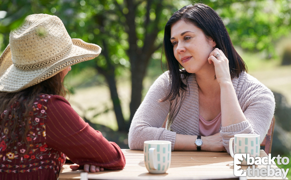 Maggie goes to confide in friend Roo (Georgie Parker) as she wonders whether she’s made things a hundred times worse with Ben. She explains that she’s not looking for a quick fix by saying sorry, but just wants to know that he’s willing to give their marriage a go.