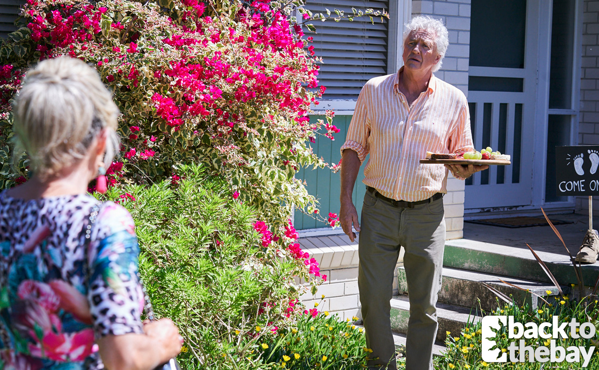 Marilyn (Emily Symons) is of course on the guest list, and Gemma convinces Ari to extend the invitation to John (Shane Withington) when they meet him outside the surf club.