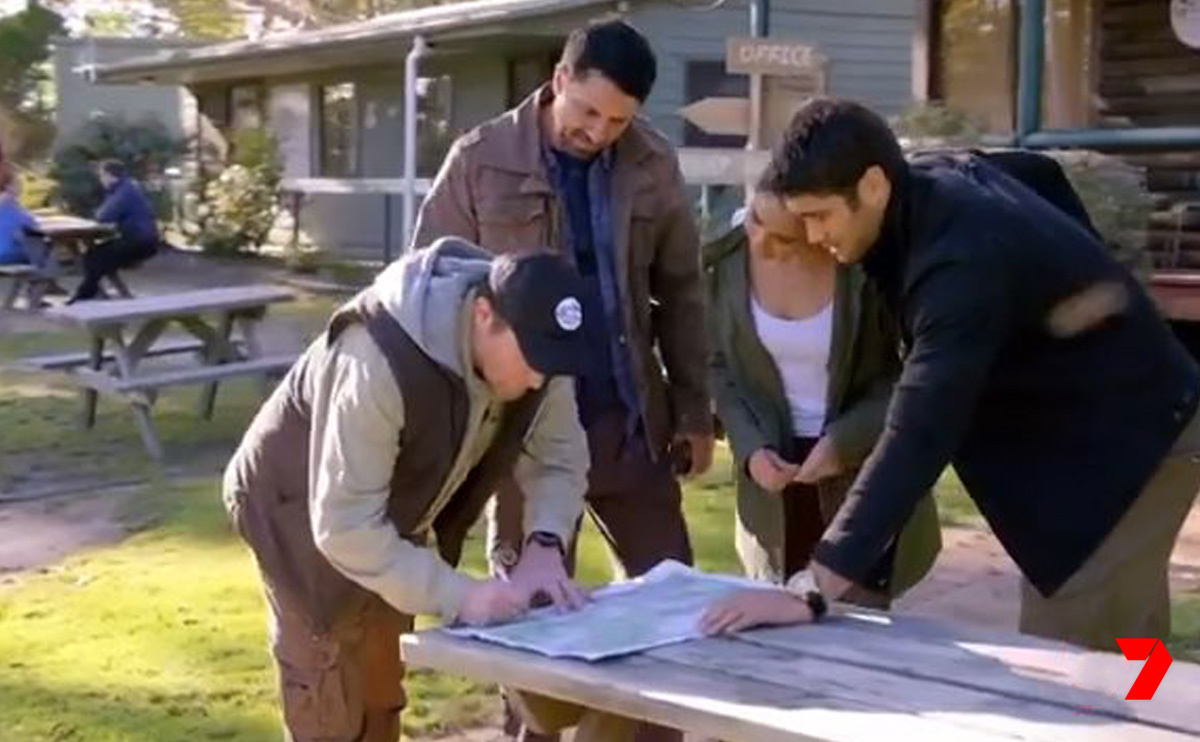Ari (Rob Kipa-Williams), Tane (Ethan Browne) and Mackenzie (Emily Weir) are shown hot on the trail of the couple, as they check in with a park ranger who appears to mark out some possible areas to check out.