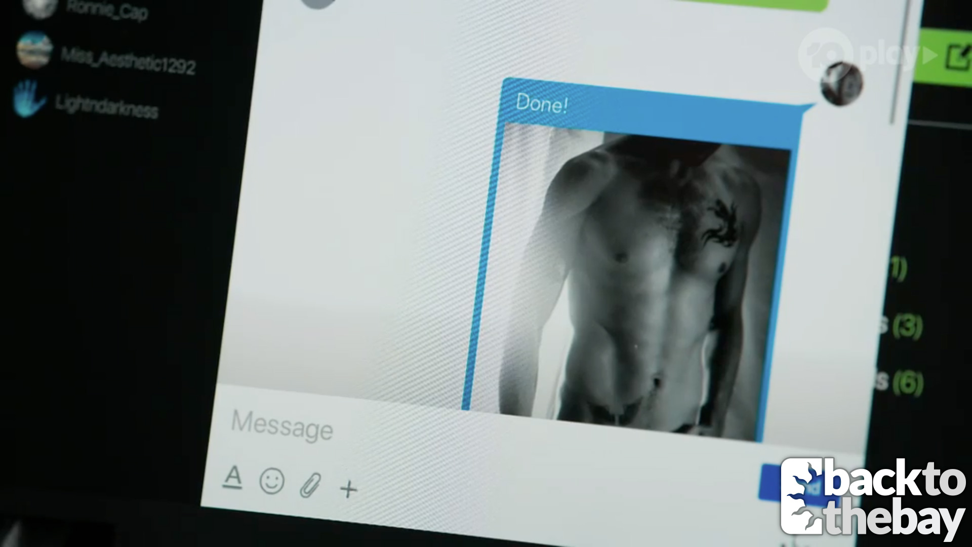 He strips off in front of the camera. He uploads the picture, and hits Send.
