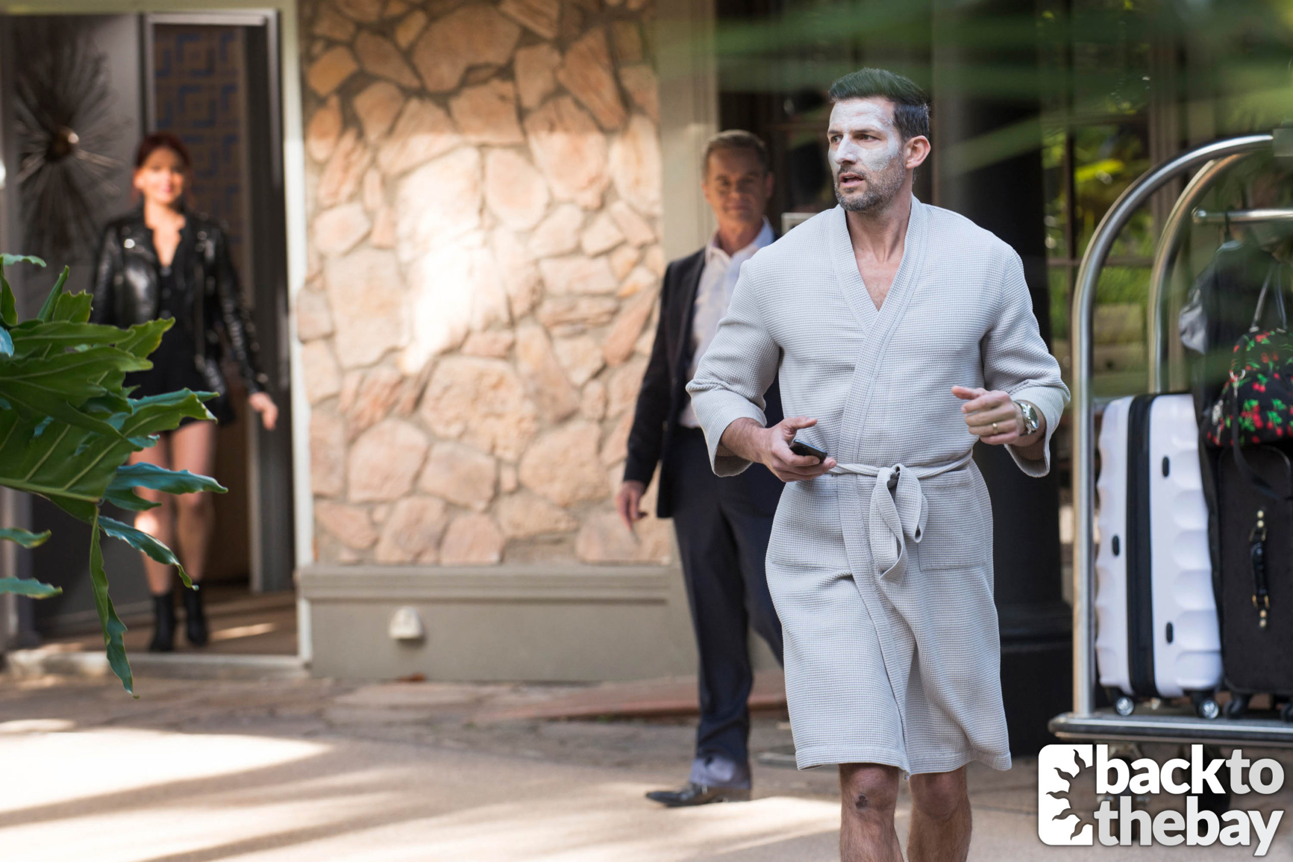 Before she can tell him she’s joking, Pierce runs out into the Lassiters main square in nothing more than his dressing gown and face mask… as Paul and half of Erinsborough watch on.