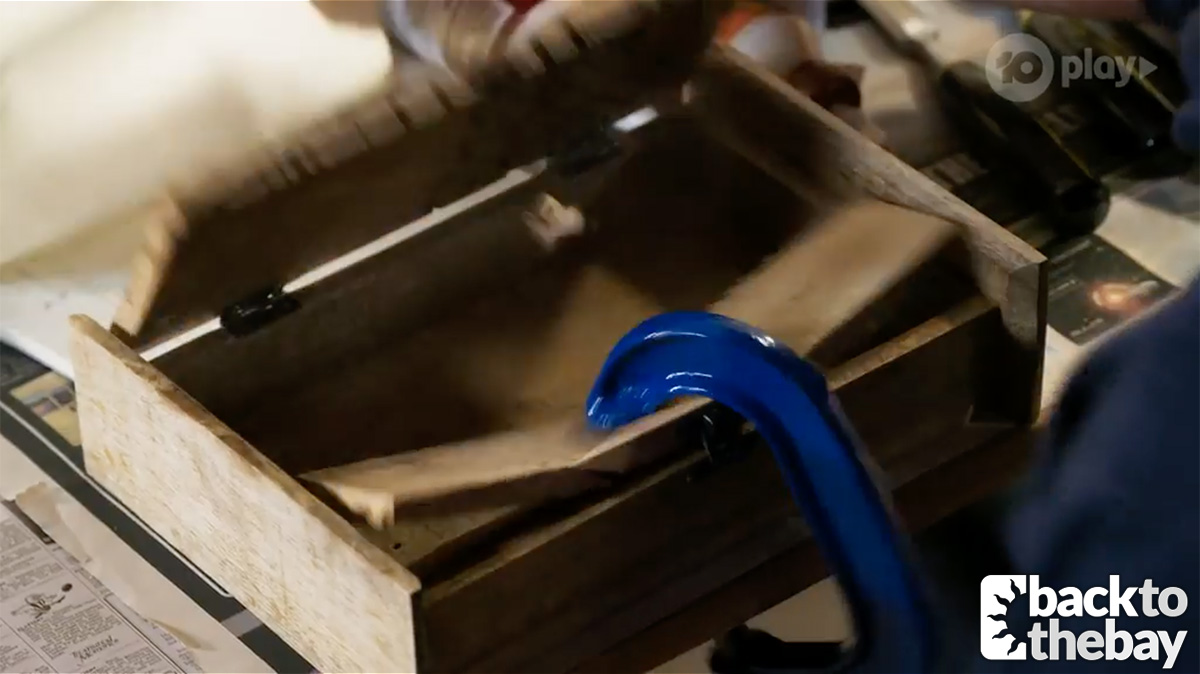 Later, Shane is seen struggling to work on the box, twisting the clamp too tightly whilst deep in thought, and breaking part of the box as he’s doing so.