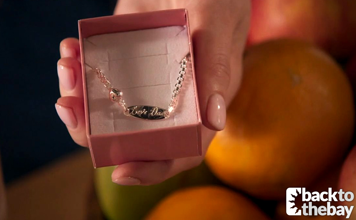 In the meantime, Jasmine picks up a very special gift for Grace—a silver bracelet, onto which she has had engraved “Love Dad”. She shows it to Irene who thinks it’s a lovely gesture and a fitting tribute to Robbo.