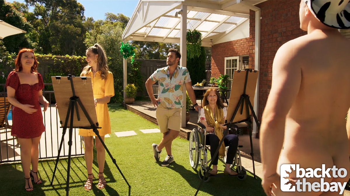 The cavalry is shocked by his decision to go completely starkers, thinking he may have preferred something to keep his modesty intact. Kyle immediately backtracks, querying Fay on whether she’d like him to retrieve a fruit bowl.