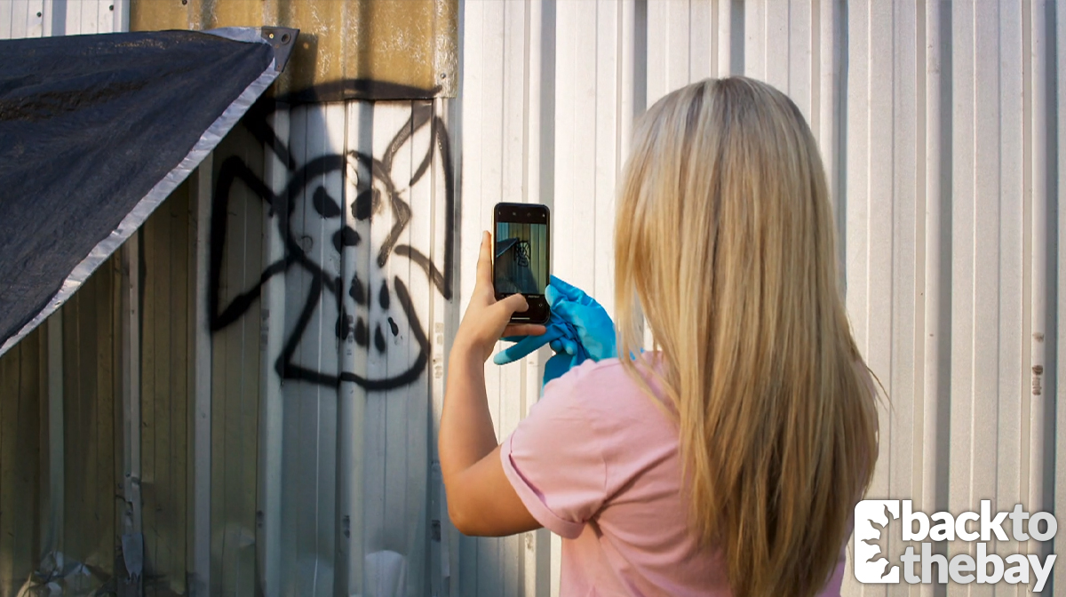 When Roxy caught them stealing from their latest delivery, she chased after them, and stumbled across what looked to be a run-down hangout behind one of the buildings on Power Road. There, she found a spray painted image of the ring found at the site of her attack. Bingo! Finally, a clue as to who attacked her.