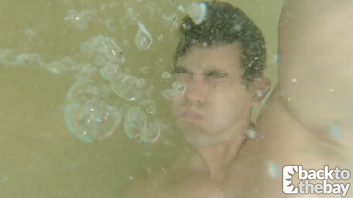 Justin is hit by a huge rogue wave, knocking off his board. Shocked by the force of the wave, his back seizes up, and the experienced surfer is unable to keep his head above the water! He goes under again and again, and it’s clear he’s in serious trouble.