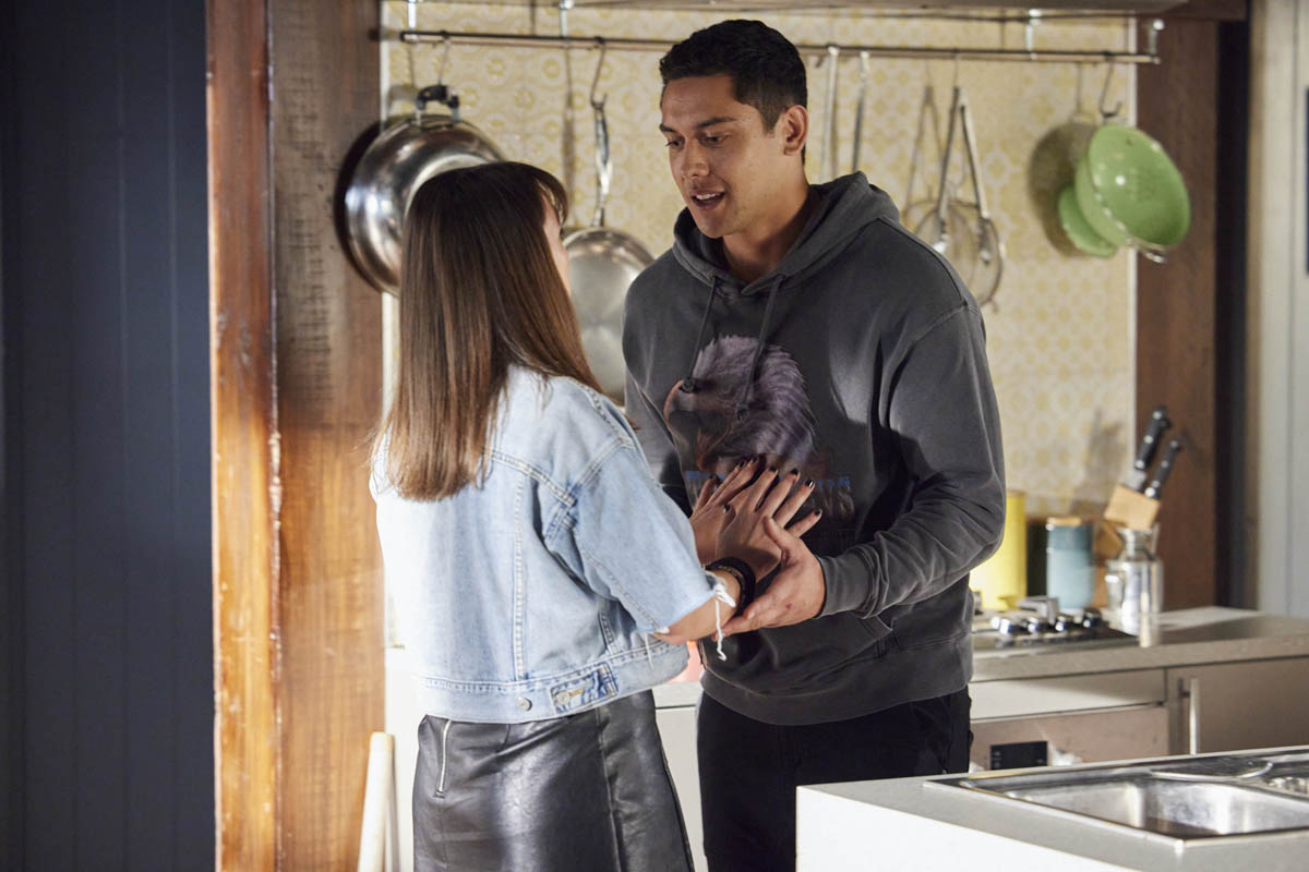 In the moment, Nikau misinterprets Bella’s friendliness for forgiveness and goes in for a kiss.