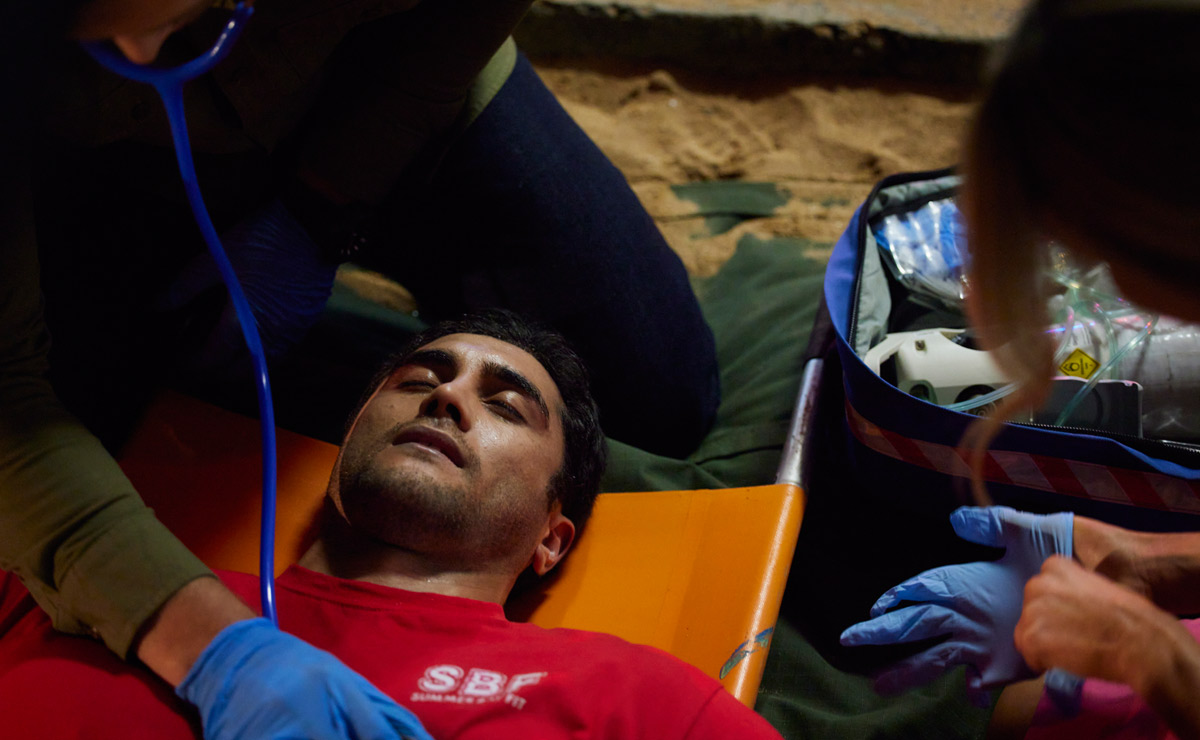 While he may have been discovered quickly, he’s in a bad way. He’s unconscious and has born the biggest brunt of the toxic chemicals.