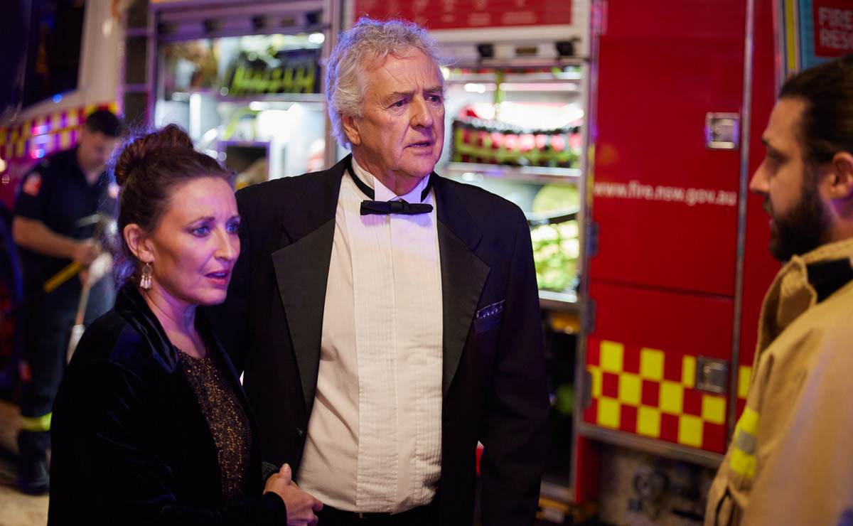 Meanwhile, sitting directly underneath the air conditioning vent that the chemicals are being expelled through, Martha tells Alf (Ray Meagher) and Marilyn (Emily Symons) that she’s suddenly started to become a bit light-headed. Alf and Marilyn suggest that it’s perhaps a combination of all the excitement plus champagne – but the real reason is about to be uncovered!