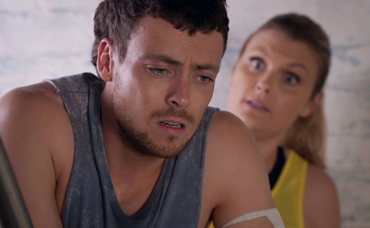 The next day, following their bizarre encounter with Marilyn, the pair head into the gym for Dean’s latest rehab session. As Ziggy kneels down in front of Dean to assist his leg exercises, it’s clear the sexual tension between them is close to boiling over.