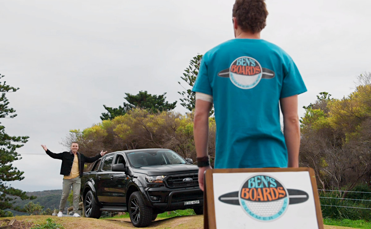 The next day, Logan shows up at the board shop bright and early and throws him the car keys—perfect day for a drive!