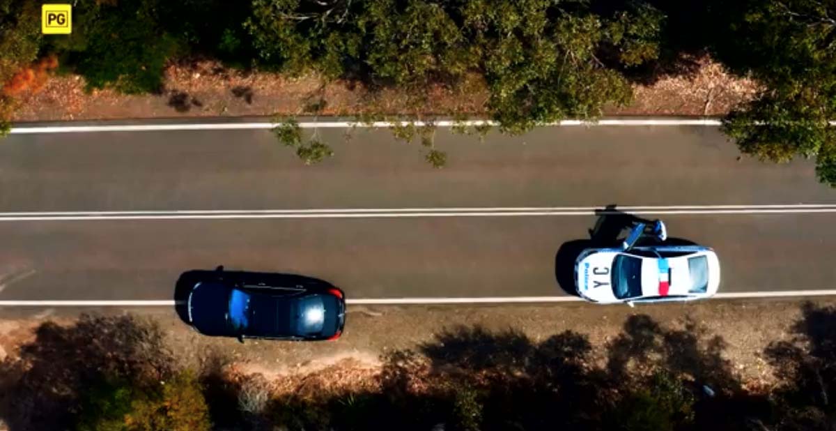 As police cars speeds towards her from the other direction, she knows the game is up. When one of the cars skids to a stop on a diagonal, blocking her path, she has no choice but to come to a stop.