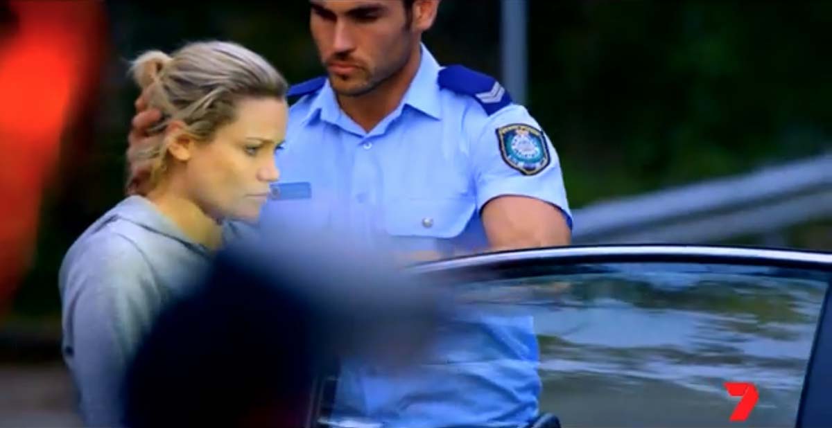 While forensic officers remove the body from the car, Cash handcuffs Mia and escorts her into the back of his police car.