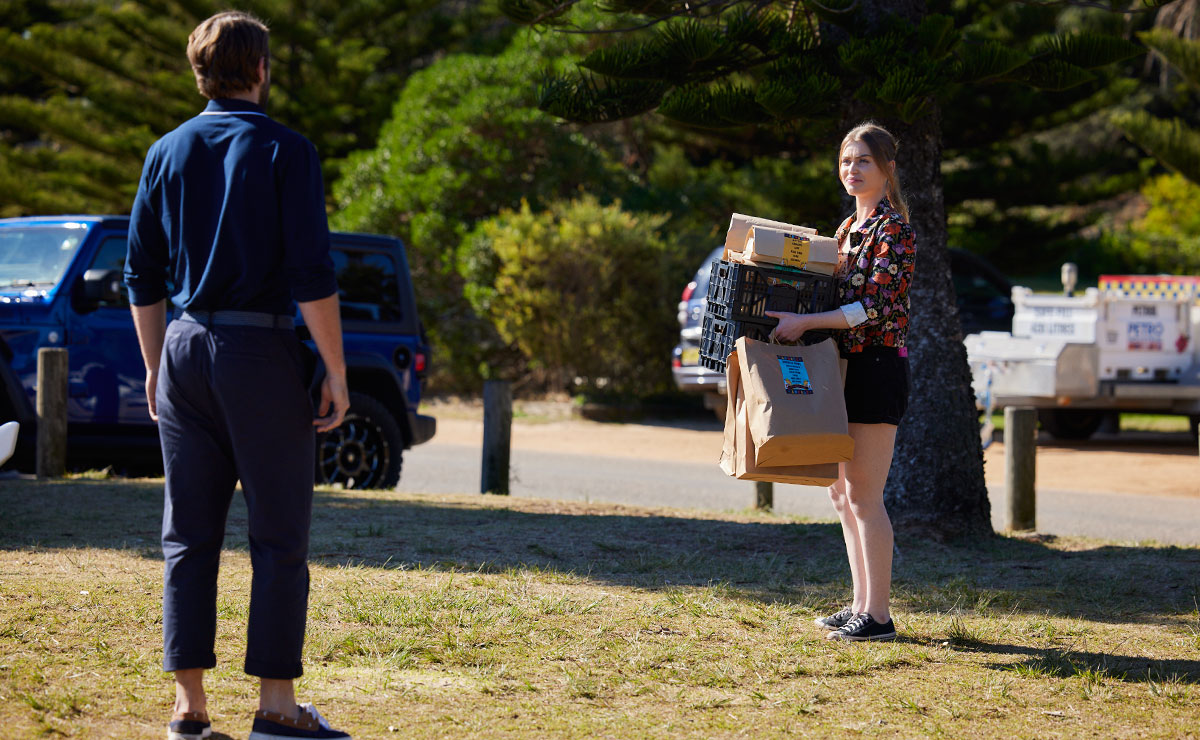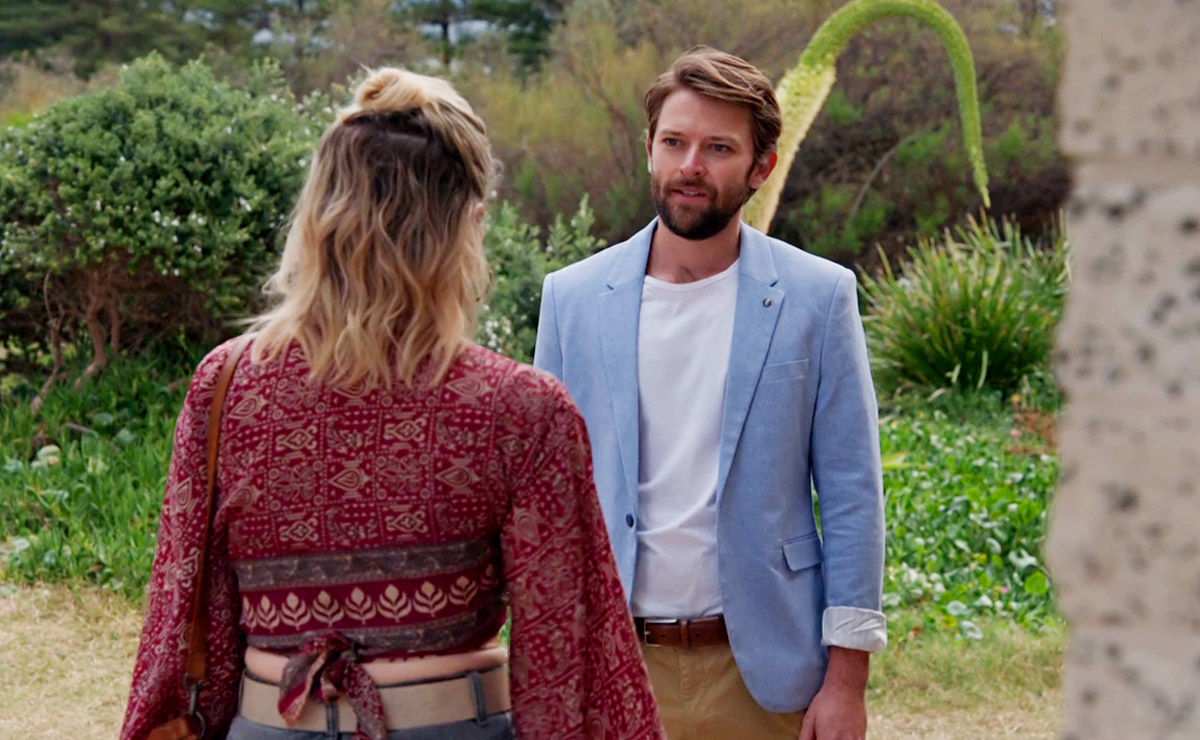 Although he doesn’t find Mia there, and declines Tane’s offer of passing his name on, Mia then spots Matthew exiting the surf club. Making her excuses to Ari, she heads outside and calls after him.