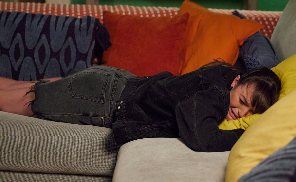 But far from being relieved, Bella then bursts into tears and collapses onto the couch in a full on meltdown.