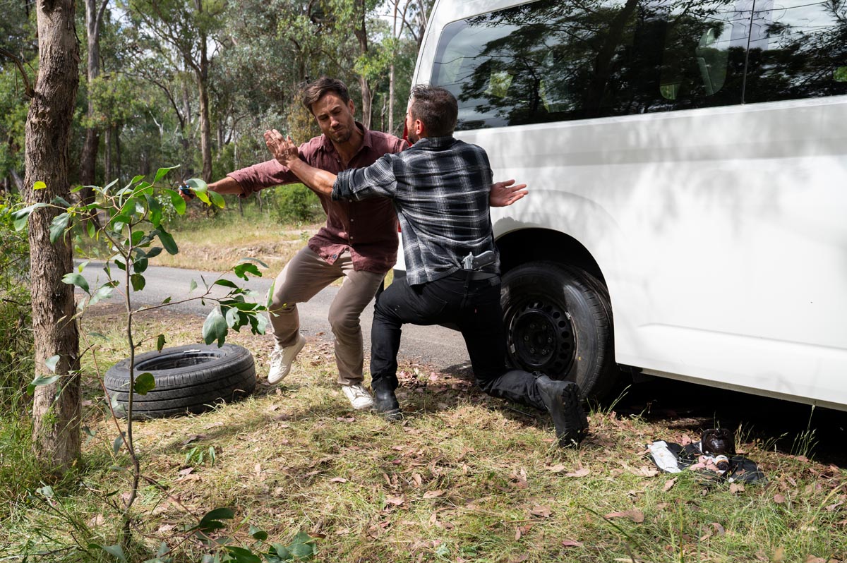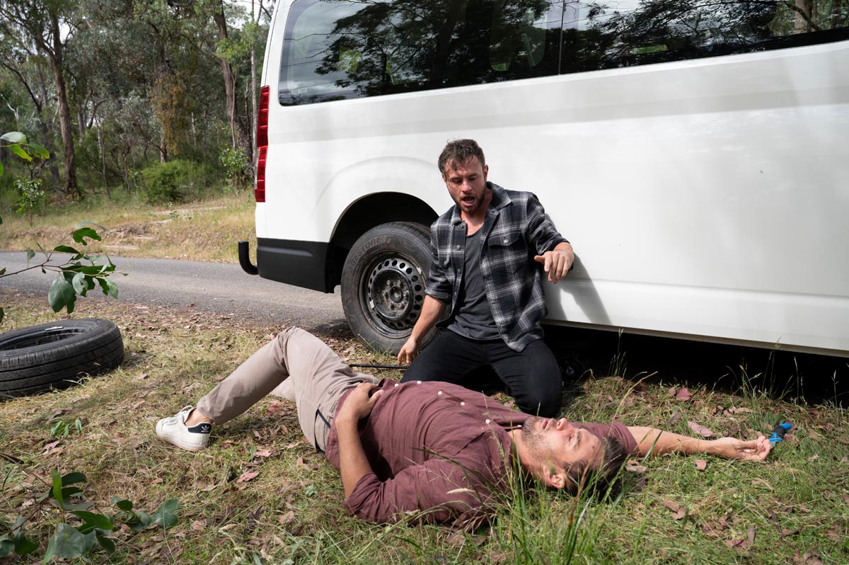 Thanks to a police tip off, Ned (Ben Hall) and Harlow (Jemma Donovan) perform a stake out and find Gareth. Now face to face with the man that Freya has supposedly been looking for for the better half of six months, they demand answers… and Gareth gives them exactly what they’re after.