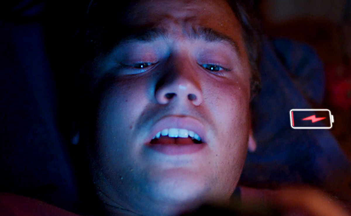As time goes on, an increasingly panicked Ryder tries to get through to Justin (James Stewart) to ask about Theo’s whereabouts, but the signal is too bad, and his battery runs out when he then tries to call the cops.