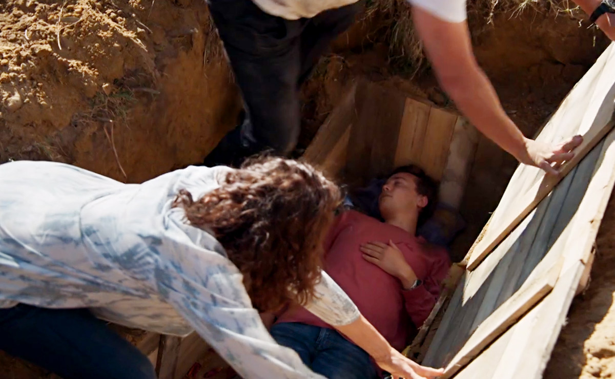 After some frantic digging, Roo and Justin eventually reach the coffin to find Ryder unresponsive.