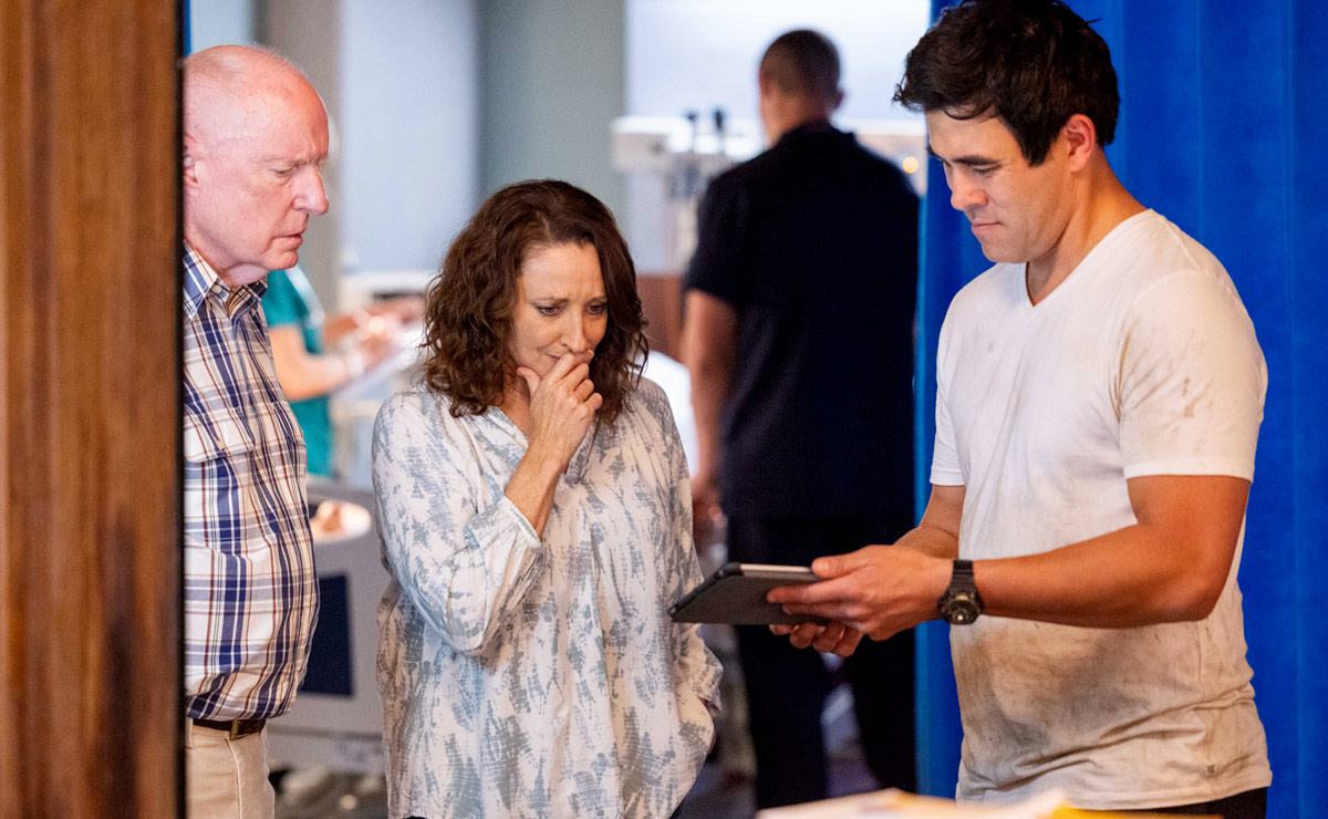 When Theo is brought into the next bed after getting his leg checked out, he desperately asks after Ryder—whilst Roo tells him the latest, she’s cold with him, clearly blaming him for her nephew’s condition.