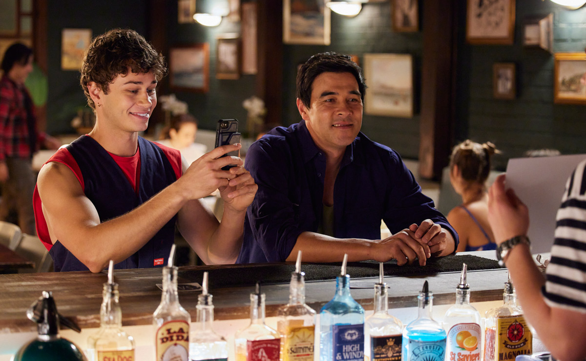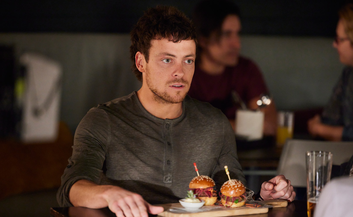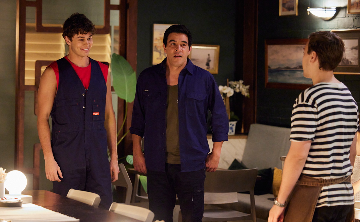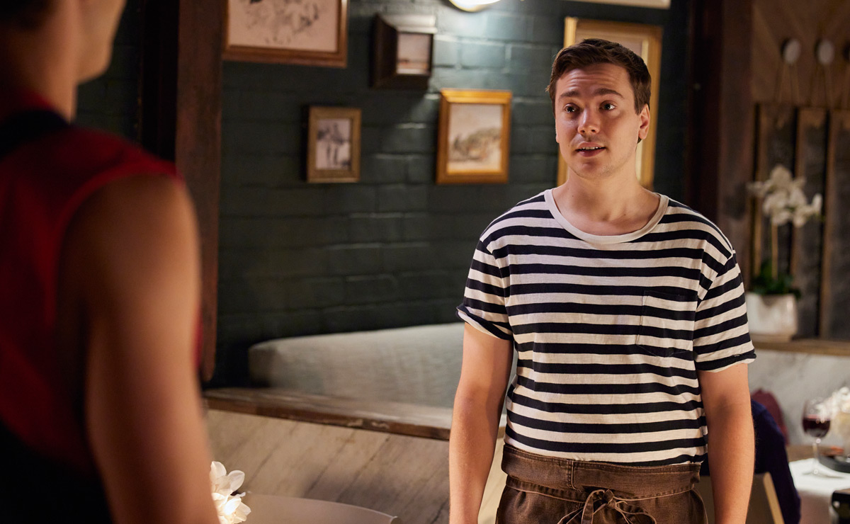 Catching up with mate Theo (Matt Evans) and Justin (James Stewart) when they drop into Salt, he informs them that not only has he accepted grandad Alf’s (Ray Meagher) apology and moved back into the house, but he’s also now graduated from his TAFE course in Hospitality Management!