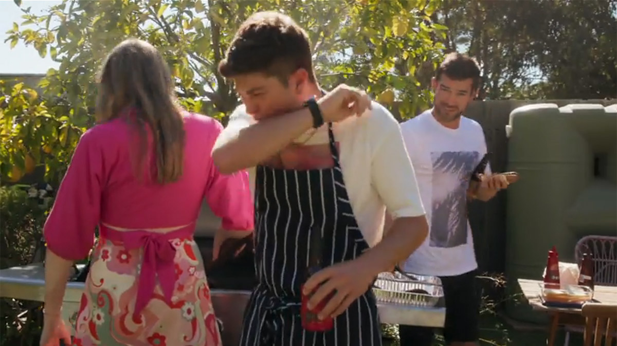 A few weeks ago, when the residents of Ramsay Street held a farewell barbecue for Kyle and Roxy, one of the scenes began with Hendrix coughing loudly as Mackenzie cooked sausages on the barbie behind him.