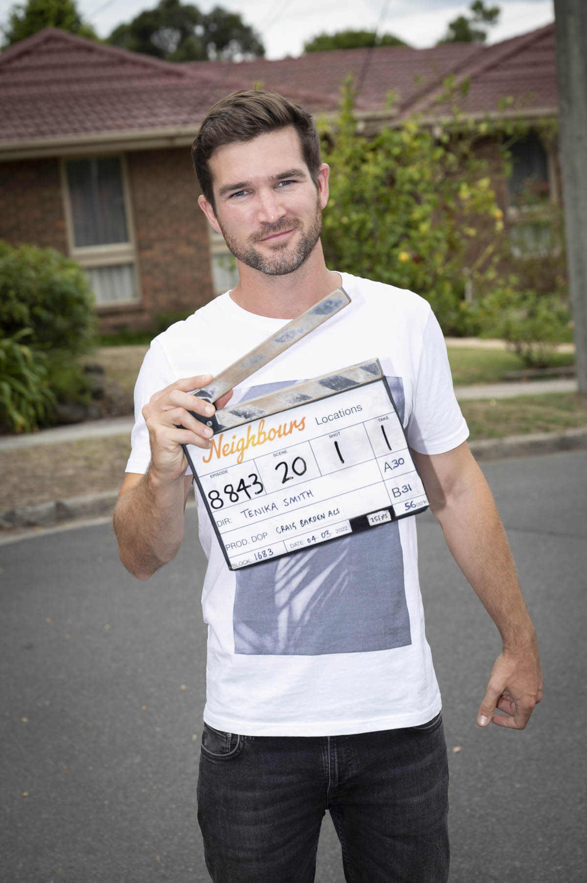 As is customary with cast departures, Ben Hall had one final set of photos with the Neighbours clapperboard and the cast of his final scene: