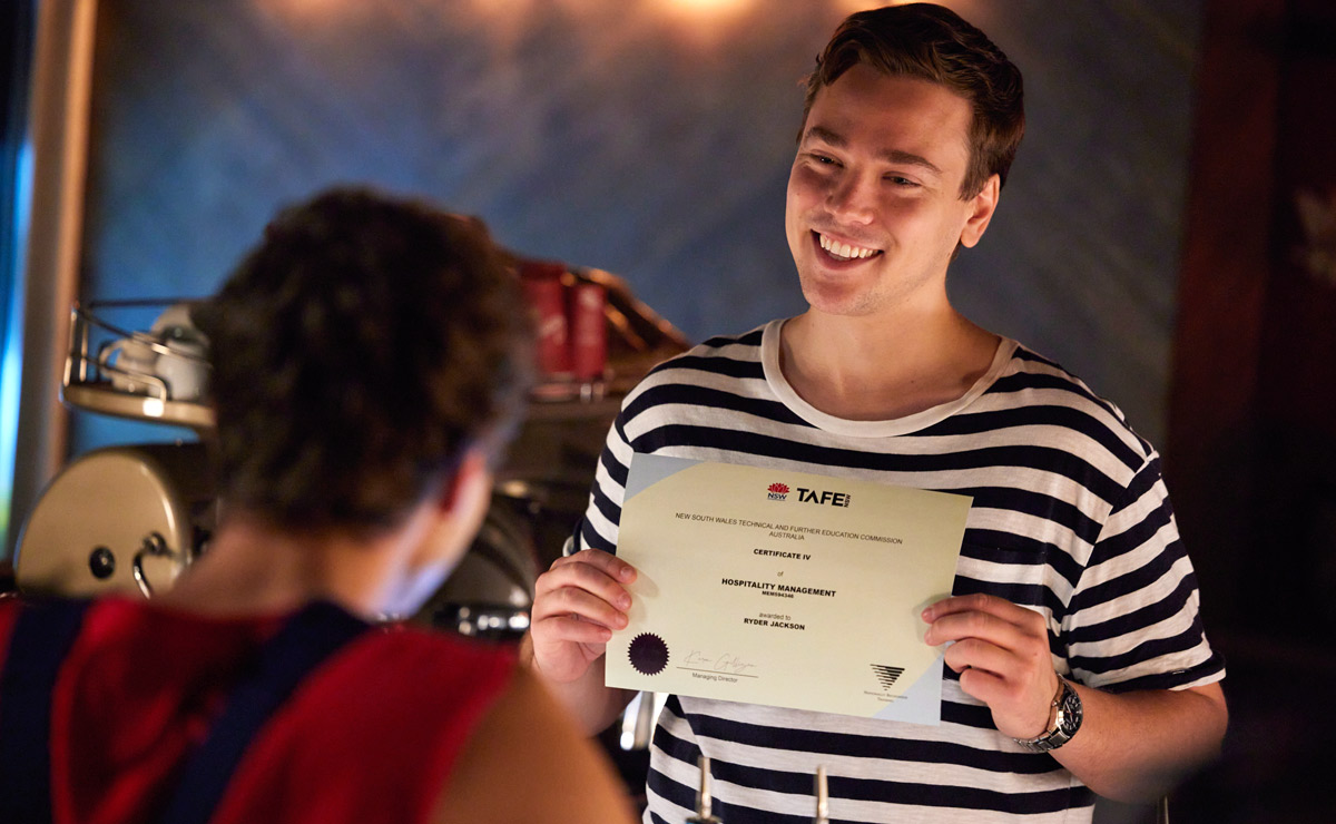 Now equipped with his Certificate of Hospitality Management, he’s perfectly qualified to take up the job on the cruise ship that will see him depart Summer Bay for the opportunity of a lifetime.